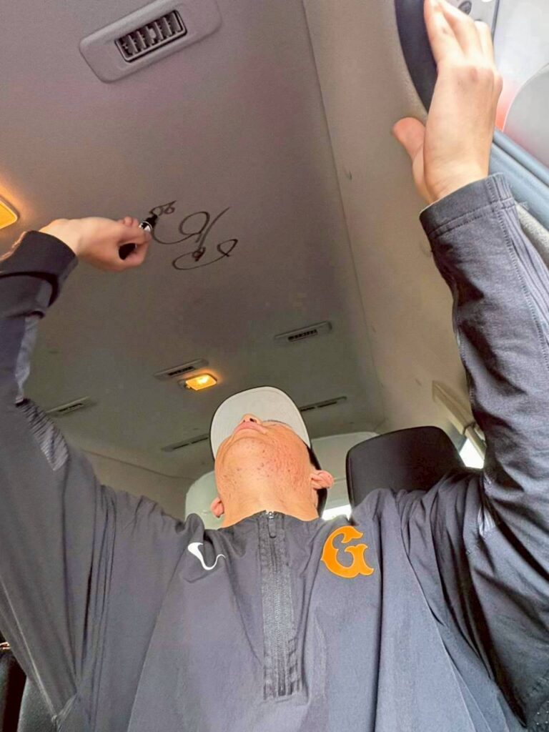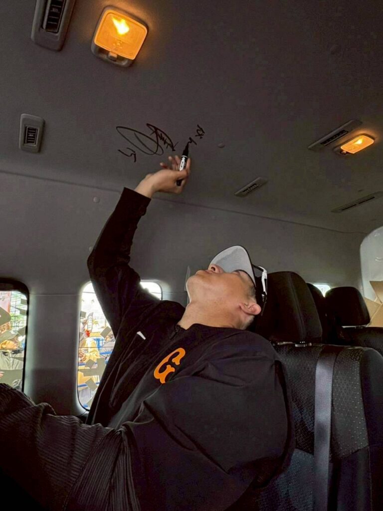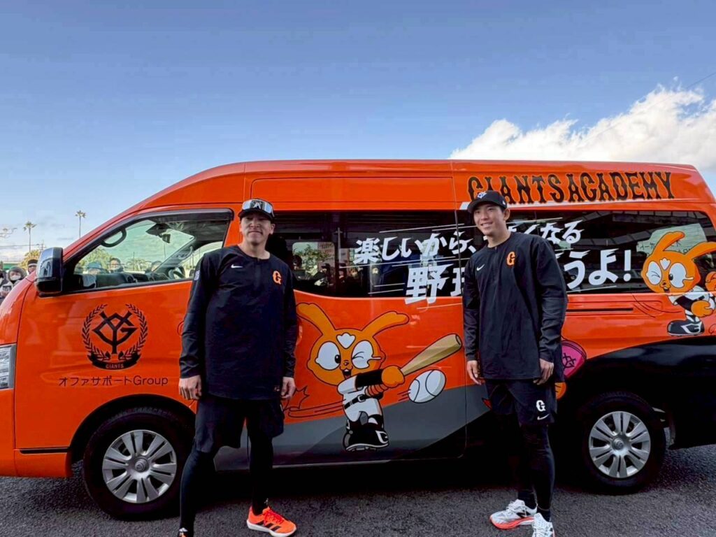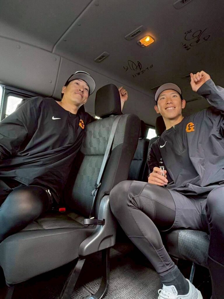さらに、日頃スクール生の送迎を行なっている(ジャビット号)に、戸郷翔征選手、大勢選手より直筆サインをいただきました。